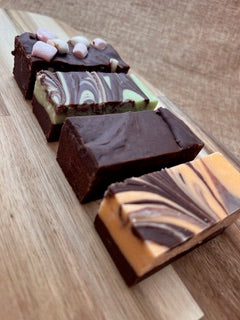 Blue Gnu Fudge offers a delightful selection of fudge boxes to suit every sweet tooth! Choose from our set boxes, each with a unique theme: The Chocolate One is packed with four indulgent chocolate-based flavours, The Fruit One offers a refreshing mix of fruity fudges, and The Classic One brings together timeless favourites. For those who love surprises, our Mystery Box features four random flavours, creating an exciting treat every time. And if you want full control, our Create Your Own box lets you handpick your four favourite flavours to enjoy. Perfect for gifting or indulging!